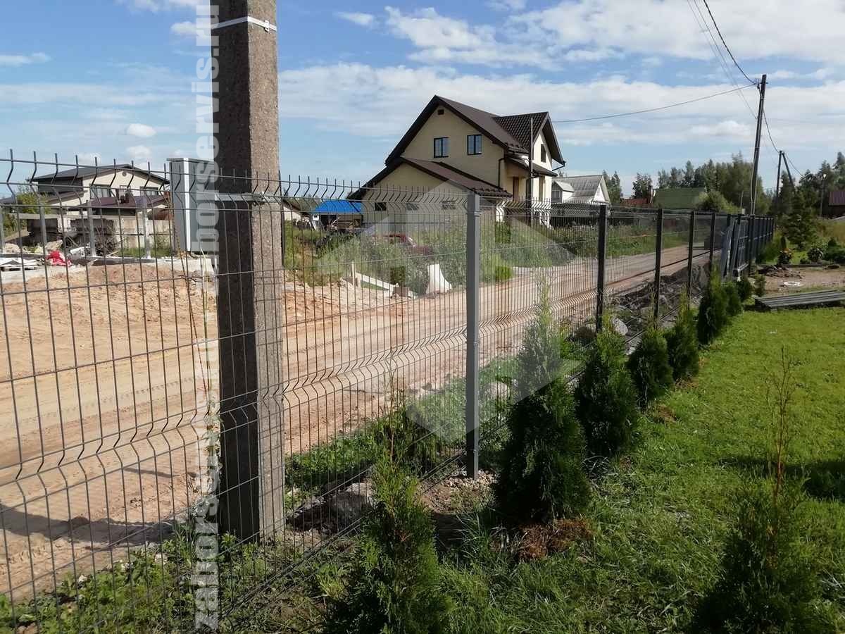 При монтаже, каждая секция 3D-забора крепится к несущим столбам с использованием входящих в комплект, хомутов или скоб. Эта технология позволяет быстро оградить даже большой участок буквально за один день, сохраняя надежность и прочностные характеристики конструкции.