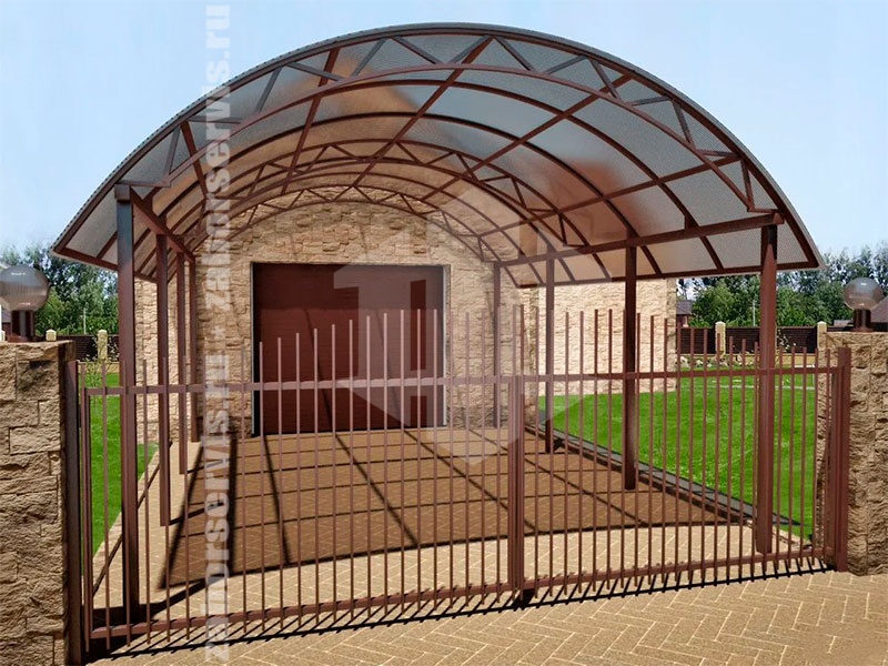Если вы выберете крышу из профлиста, то под ней будет довольно темно, и вам придётся дополнительно устанавливать освещение. Используя поликарбонат, вы получаете сразу два преимущества: защиту от непогоды и естественное освещение.