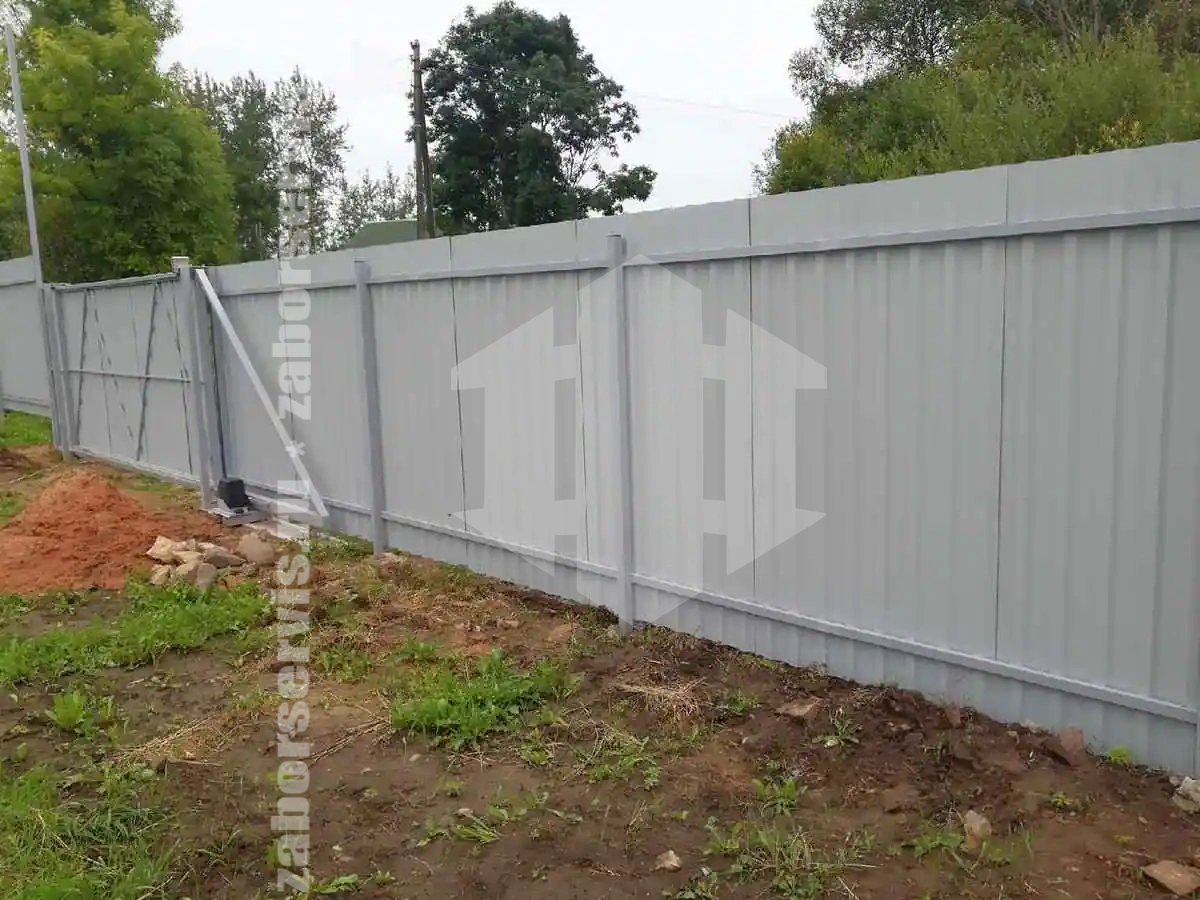 Если не брать во внимание процедуру согласования, то на монтаж 35 метров забора из профнастила понадобится один дней. Все материалы для выполнения есть всегда в наличии.